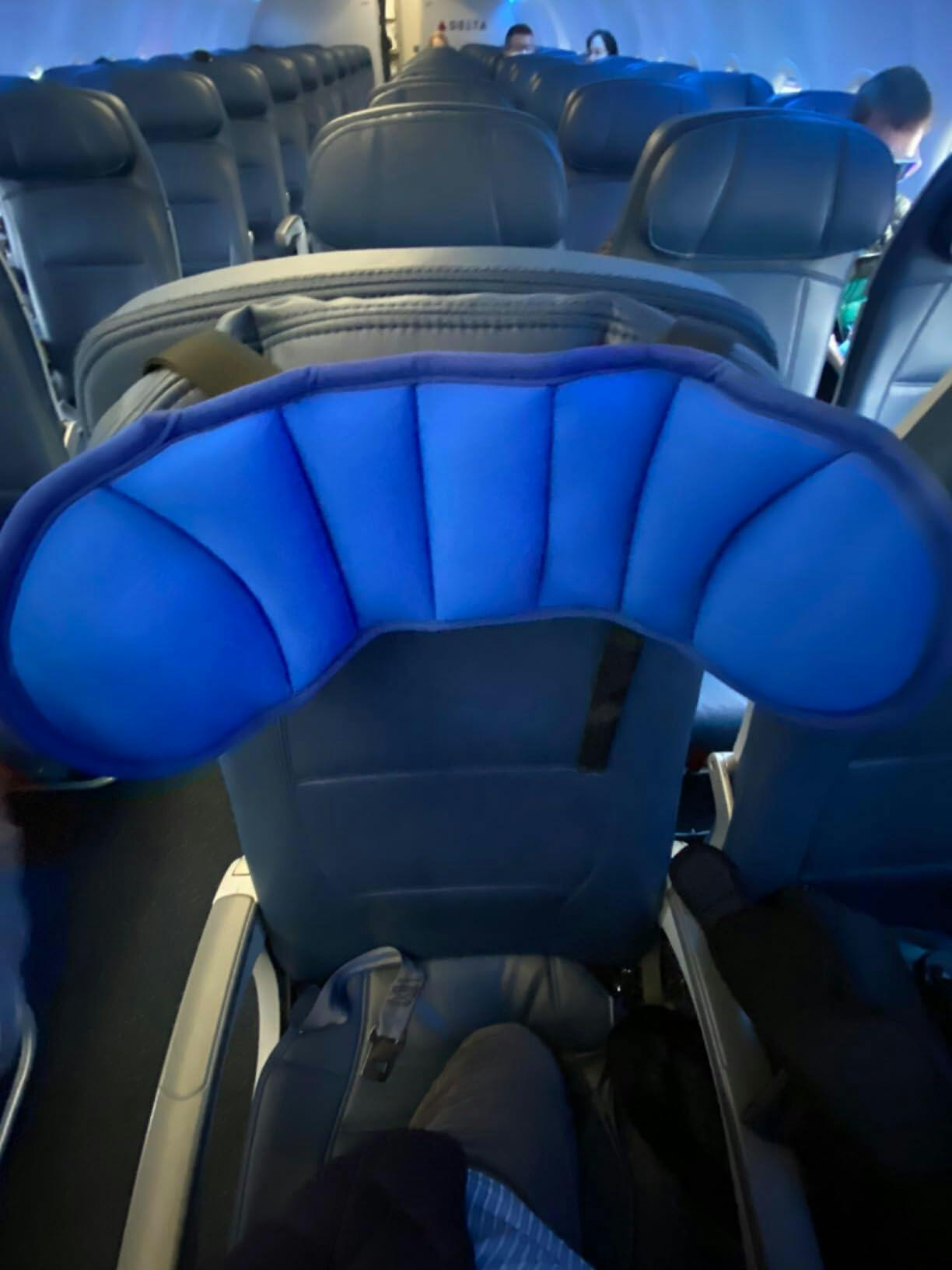 “Sleeping while seated places unnatural stress on the neck and upper spine. A well-designed support system like this helps maintain proper alignment, reduces tension, and allows the body to relax naturally — even during long flights.”